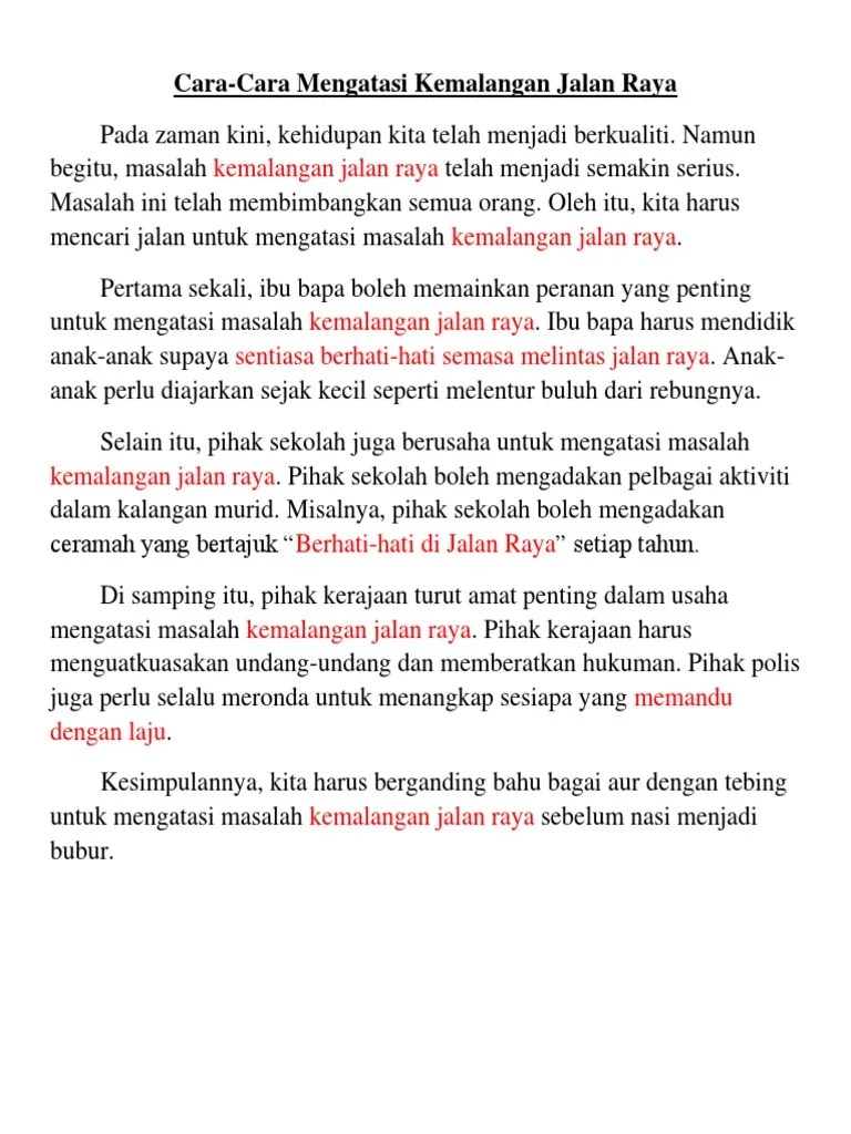 Khamis lalu, malaysia menerima deklarasi politik 18 perkara dalam hlm pbb bersama pemimpin dunia lain untuk menangani kadar kemalangan jalan . Jika sikap yang buruk ini diubah, saya percayakadar kemalangan . Perkara sebeginilah yang perlu dielakkan dalam usaha mengurangkan kadar kemalangan jalan raya. Sasaran untuk mengurangkan 40% kematian dan kecederaan parah di jalan raya;. Fyi i have future my study to college so i can't really . Oleh itu ada banyak punca yang harus kita kaji untuk memahami masalah kemalangan jalan raya supaya dapat mengurangkan kadar kemalangan ini.